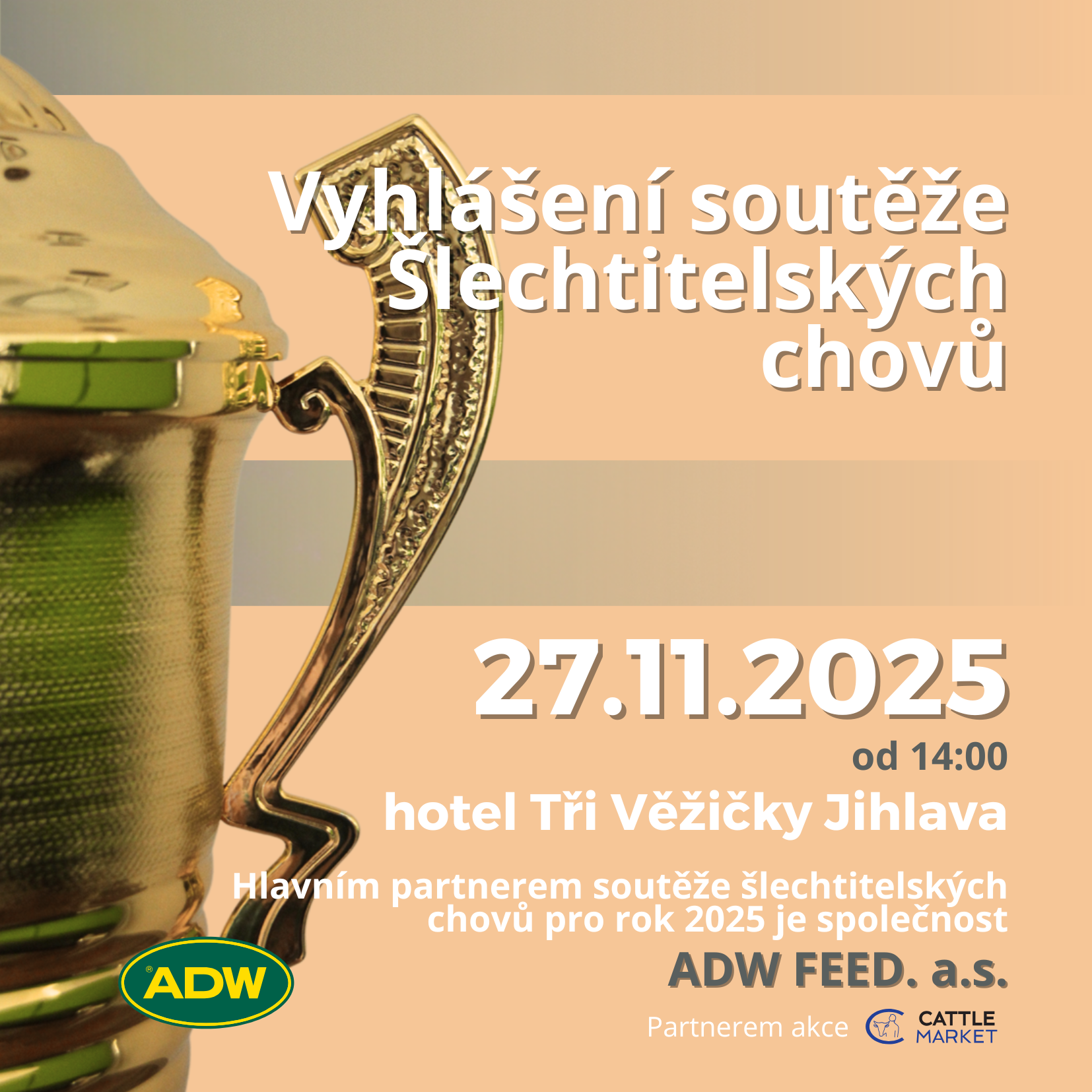 Srdečně vás zveme na Vyhlášení soutěže šlechtitelských chovů. Součástí programu bude vystoupení hostů a prezentace Partnera soutěže – ADW FEED, a. s.